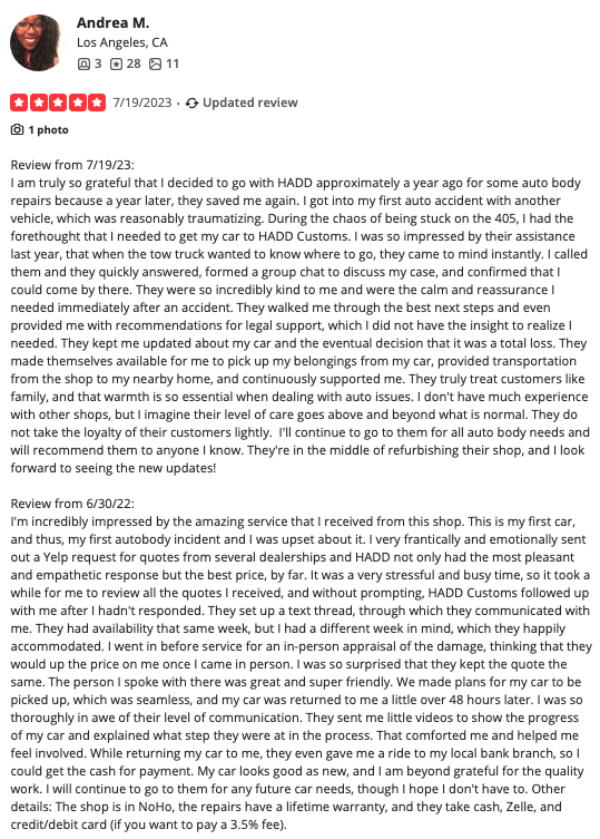 At HADD Customs, it's not just about repairs—it's about the experience. We blend impeccable workmanship with a commitment to keep you informed, ensuring unparalleled customer service at every turn.